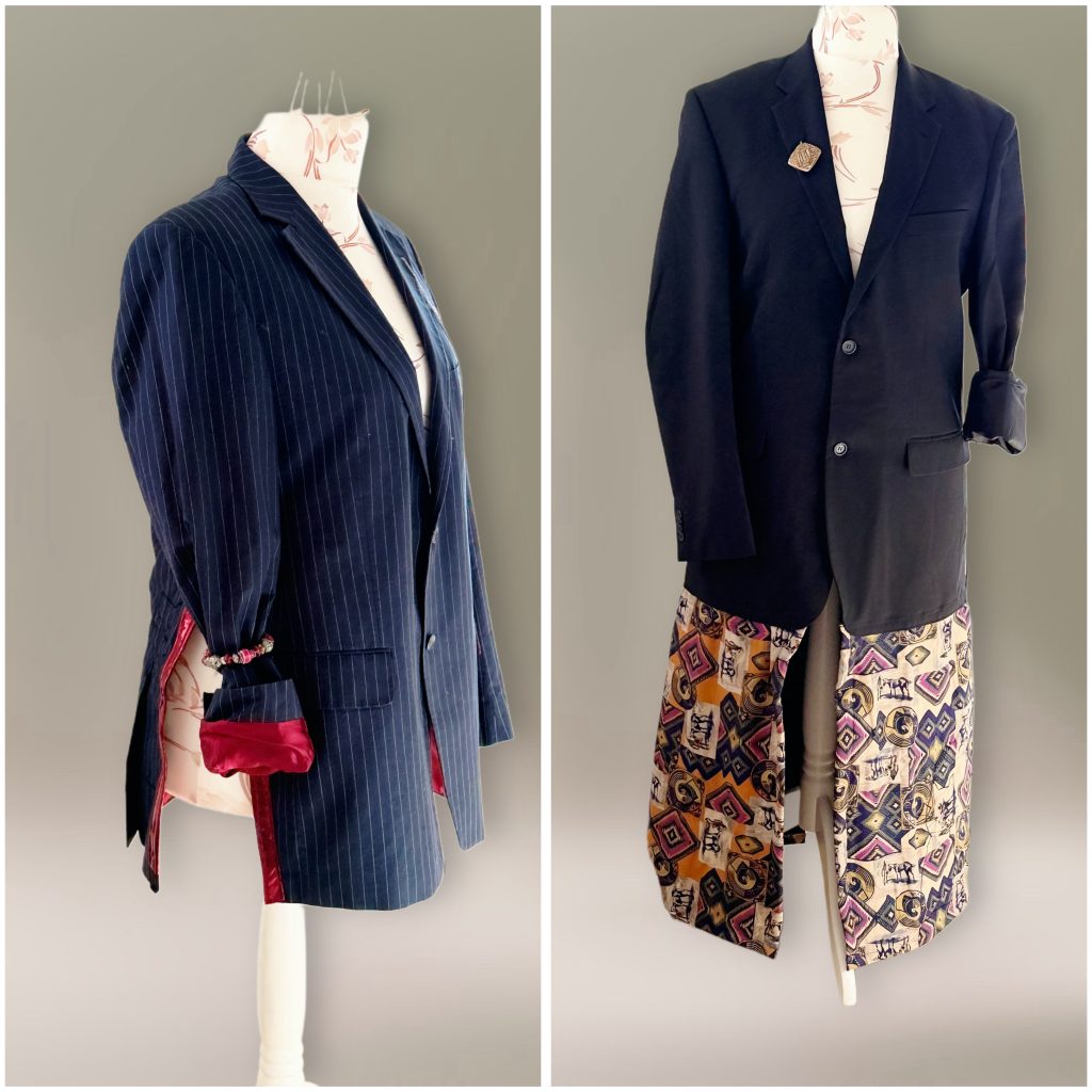 Ein Mantel für ihn, ein Blazer für sie – tragbare Upcycling – Mode aus Vintage – Stoff und Denim