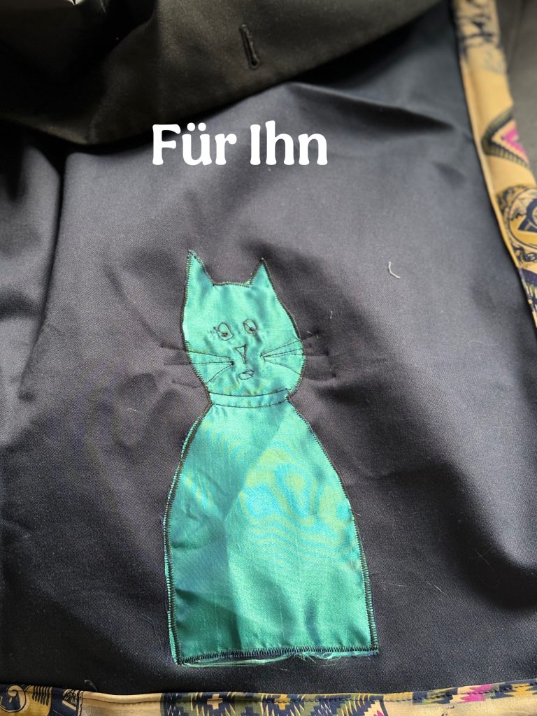 Der Mantel für ihn bekam einen Saum aus einem wunderschönen Vintage -Viskosestoff, den ich
