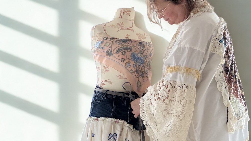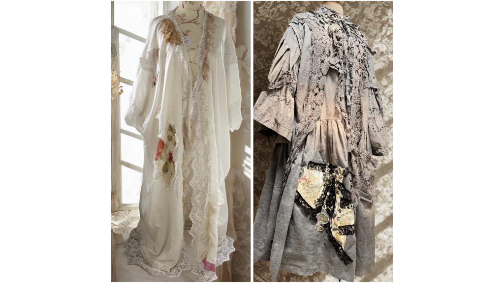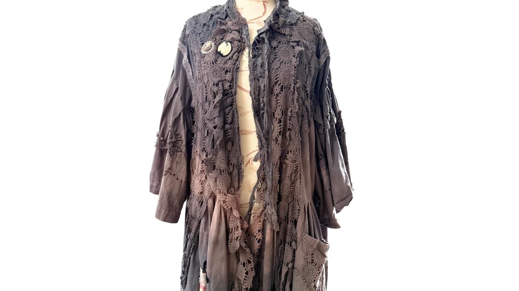 (Stoffkunst * Werk) Einordnung Dies ist kein Kleidungsstück.Es ist ein Werk. Stoffkunst Werk – Geworden Manche Stücke entstehen nicht.Sie entwickeln sich. Dieses Werk begann in Weiß. Ein Herrenhemd.Eine alte Baumwolltischdecke.Spitze,