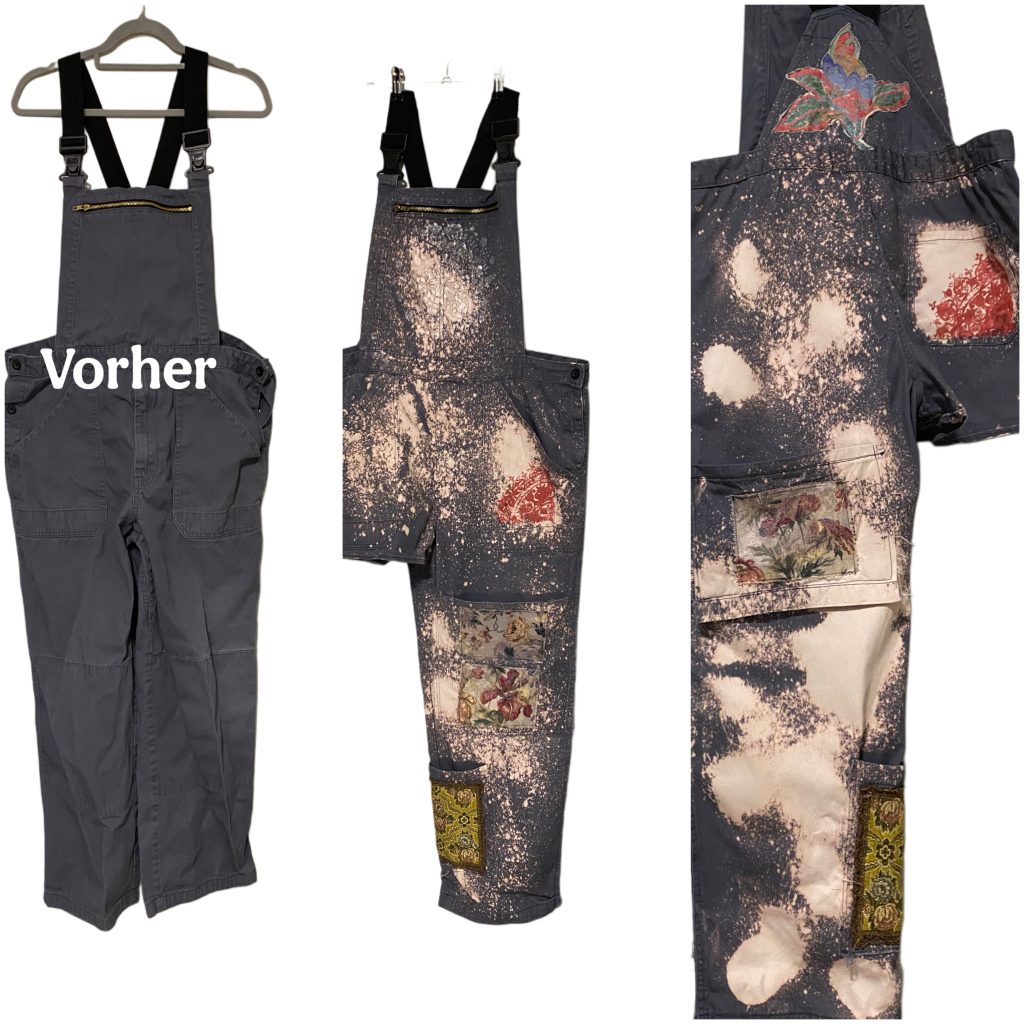 Ich habe sie vor fast zwei Jahren genäht. Es ist eine Arbeits Latzhose aus Denim, aus Erinnerungen, aus Stoffen mit Geschichte.