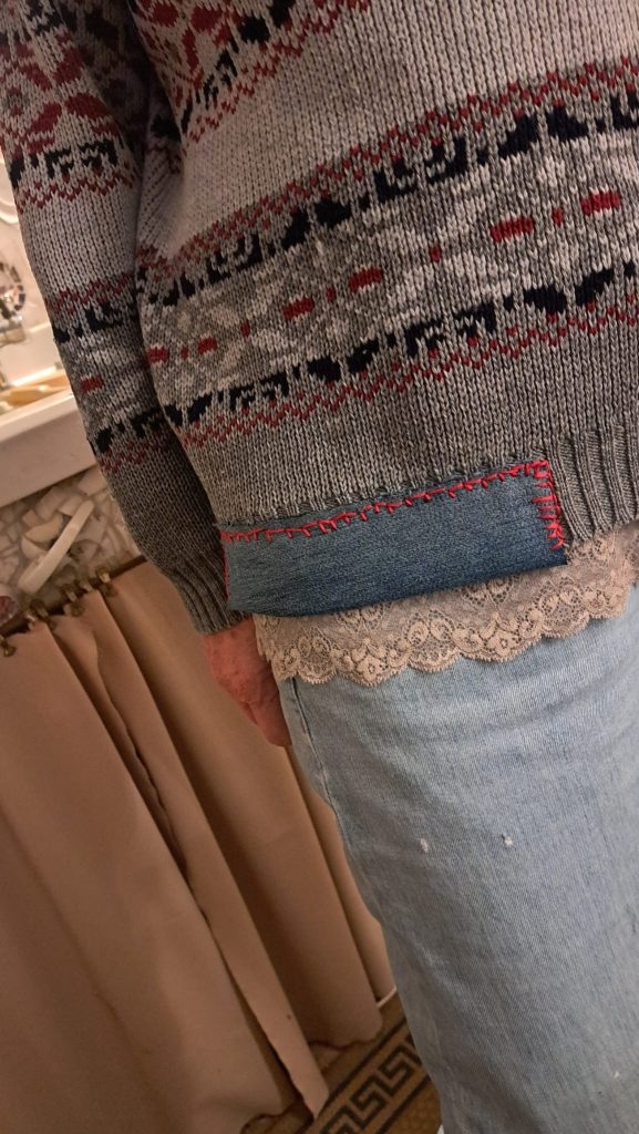 - Ein alter Pulli vom Papa, der wieder heil gemacht wurde.