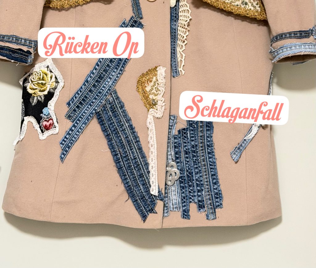 Alle Applikationen, Nähte und Eingriffe wurden von Hand gesetzt.