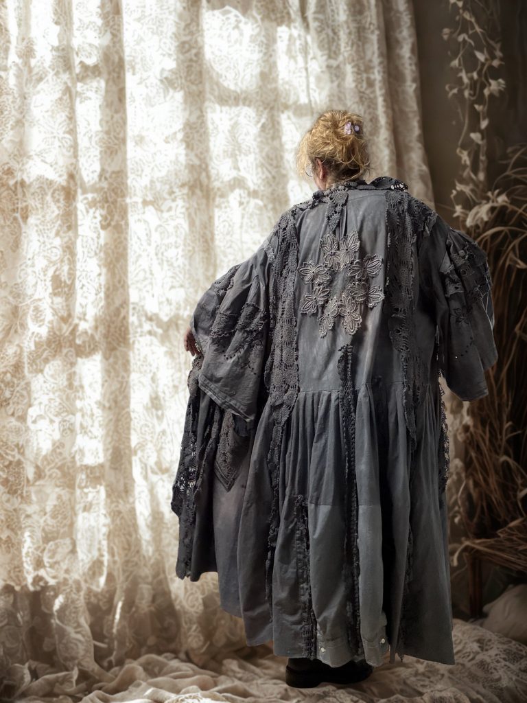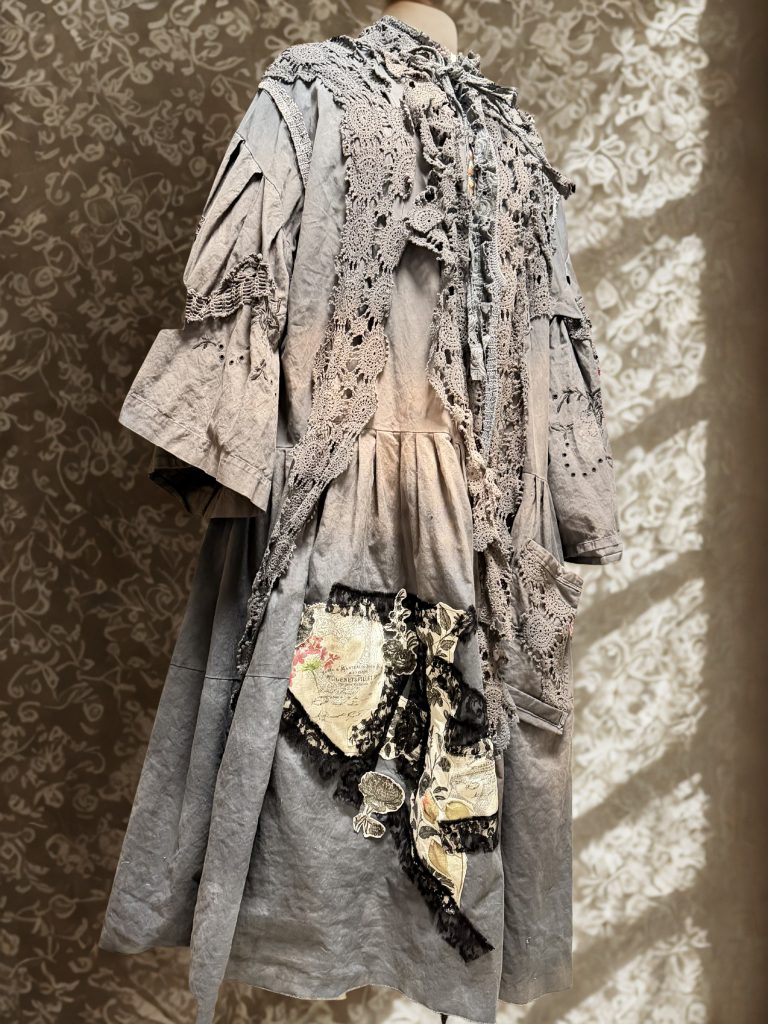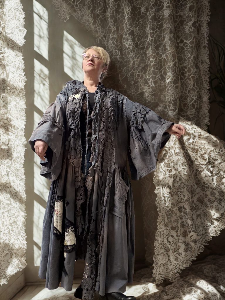 „Dieses Werk „Geworden“ zeigt meine Stoffkunst als Prozess der Verwandlung – von hell zu tief, von still zu kraftvoll.“